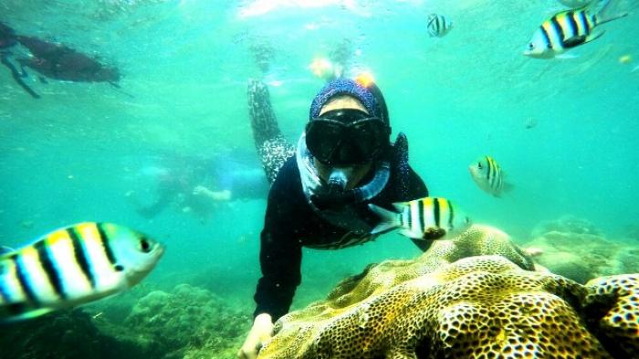 Untuk menggunakan peralatan snorkeling ini dikenakan biaya sewa 50.000/orang dan biaya retribusi masuk pantai 10.000/orang. Karena terbatasnya peralatan ini dan jika kondisi pengunjung sedang ramai maka durasi snorkel di batasi hanya sekitar 1,5 jam.